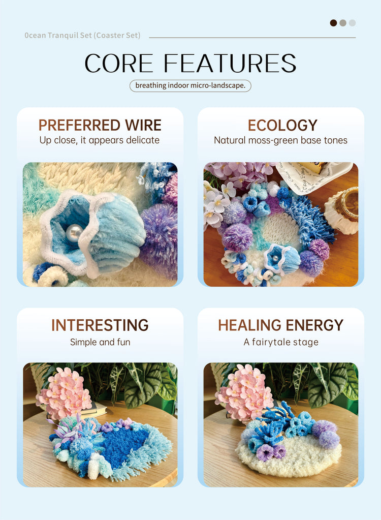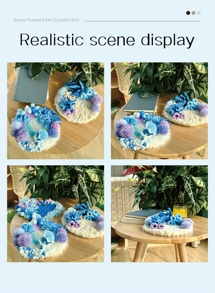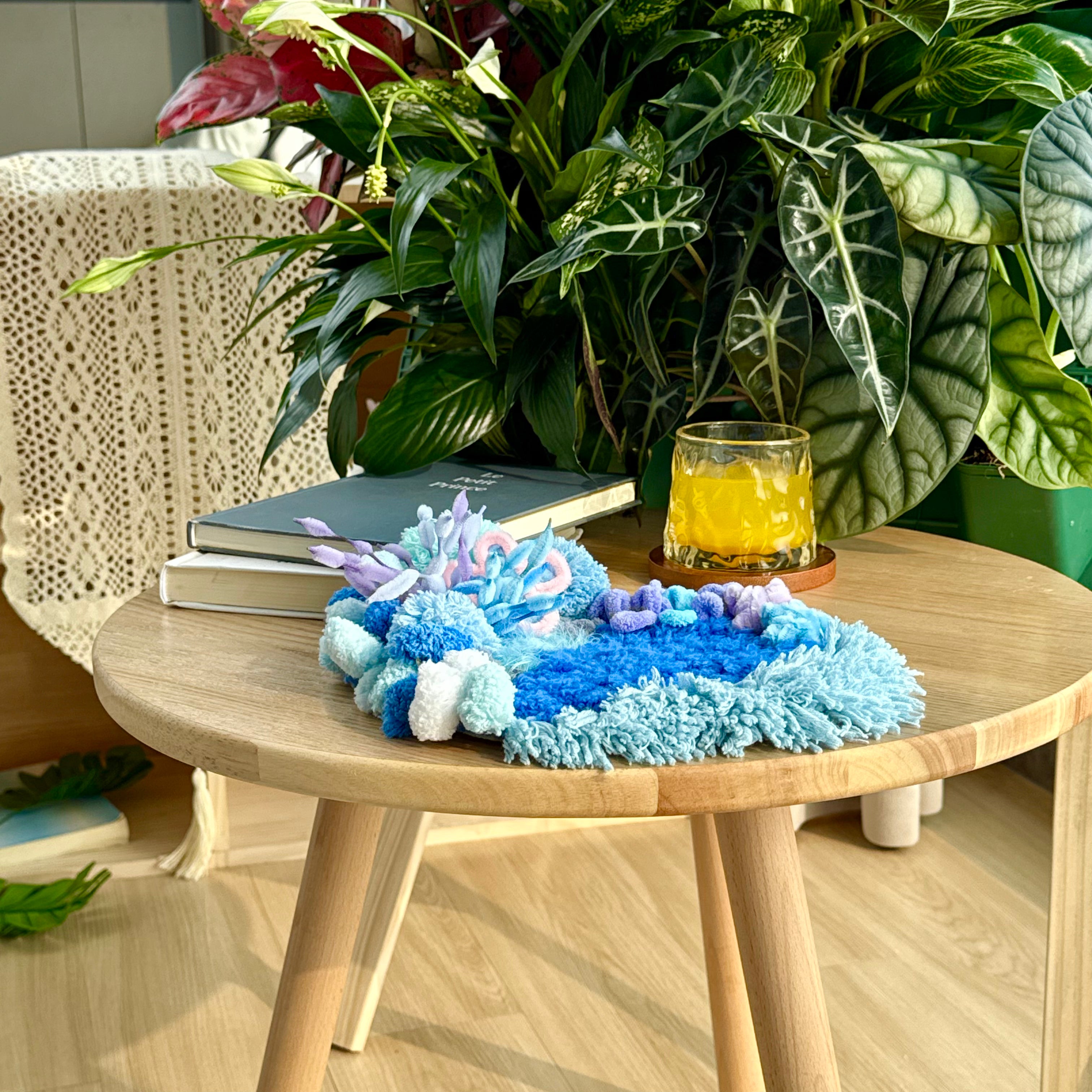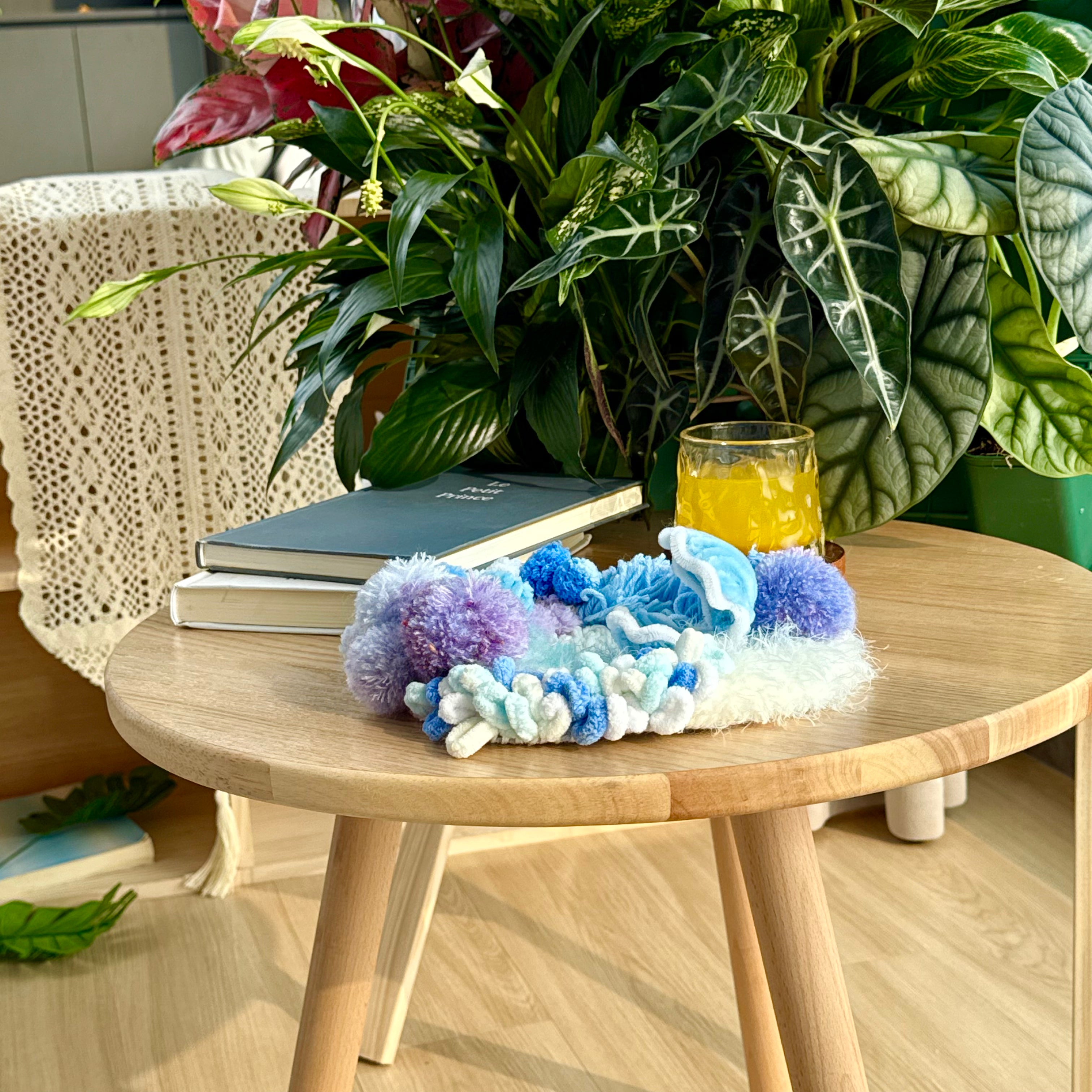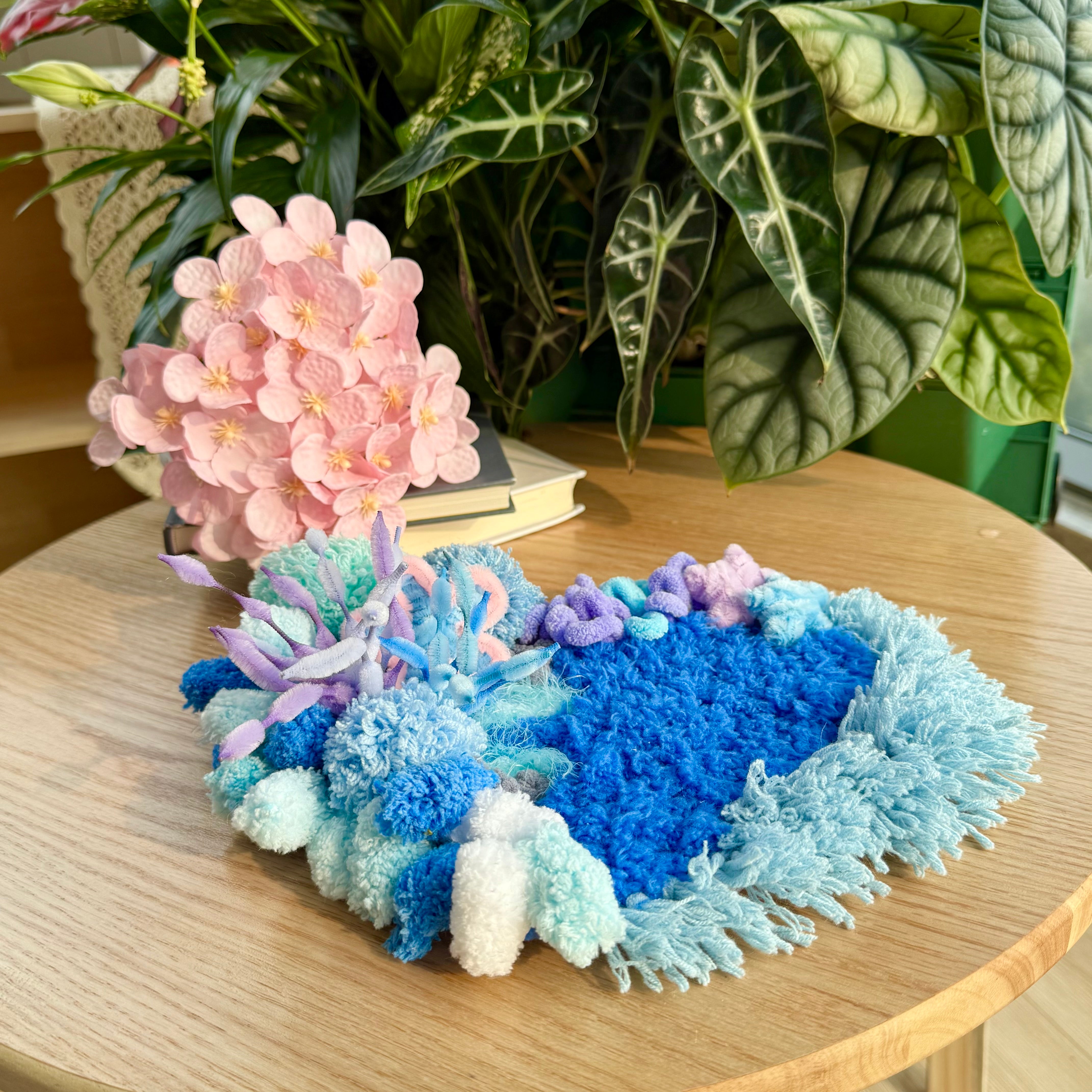 Gentle curves, layered fibers, and subtle sea-inspired textures create a miniature seascape that feels serene, tactile, and visually soothing.