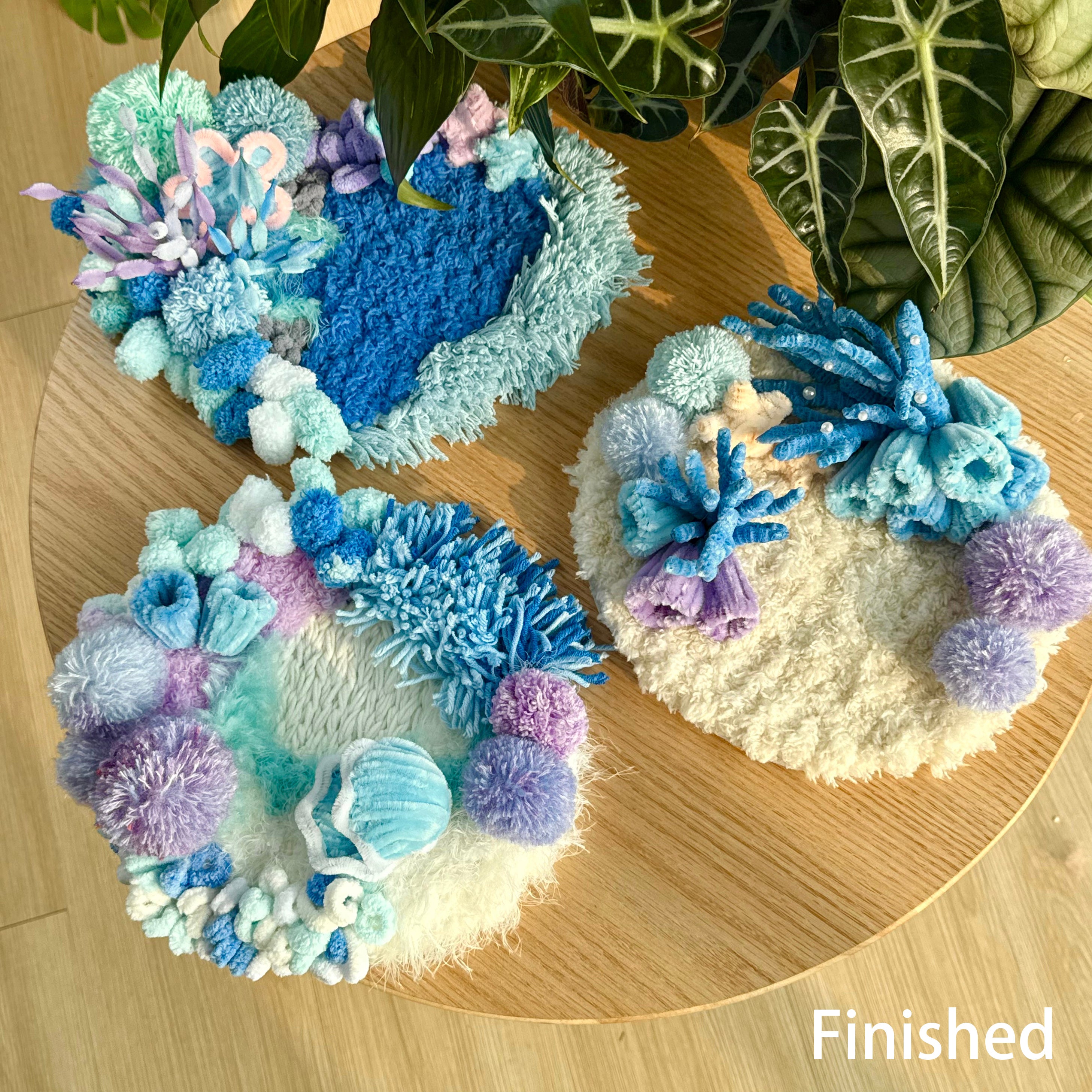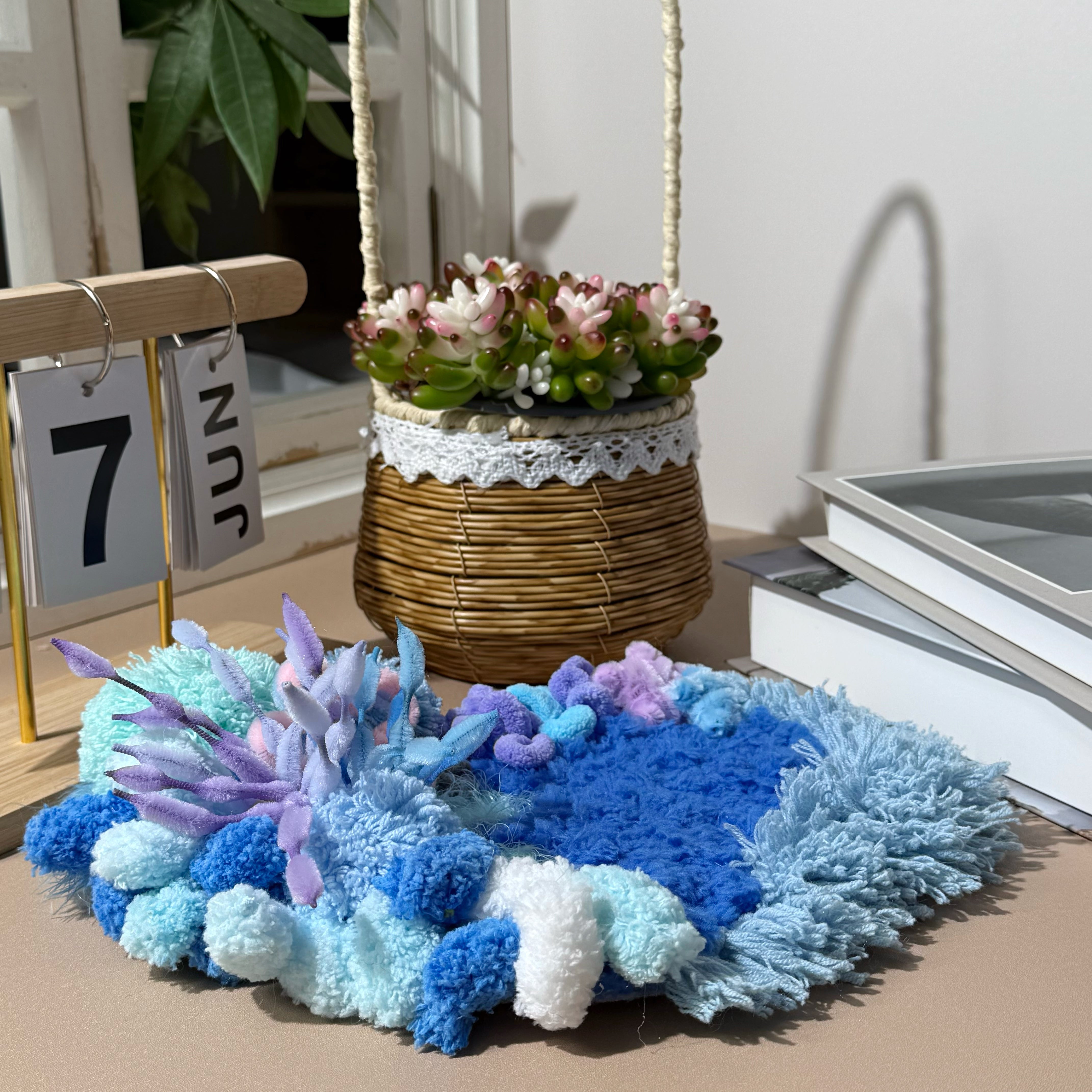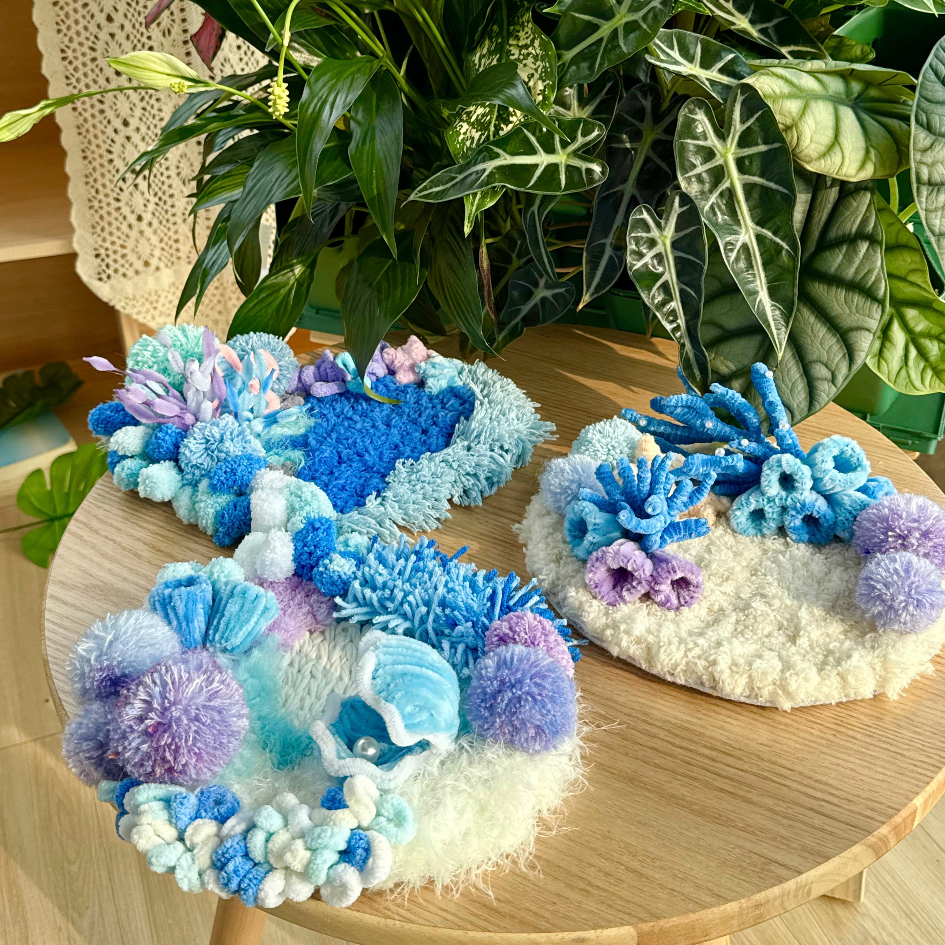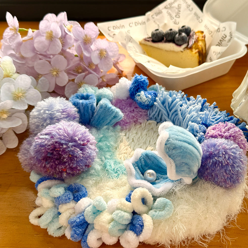 Gentle curves, layered fibers, and subtle sea-inspired textures create a miniature seascape that feels serene, tactile, and visually soothing.