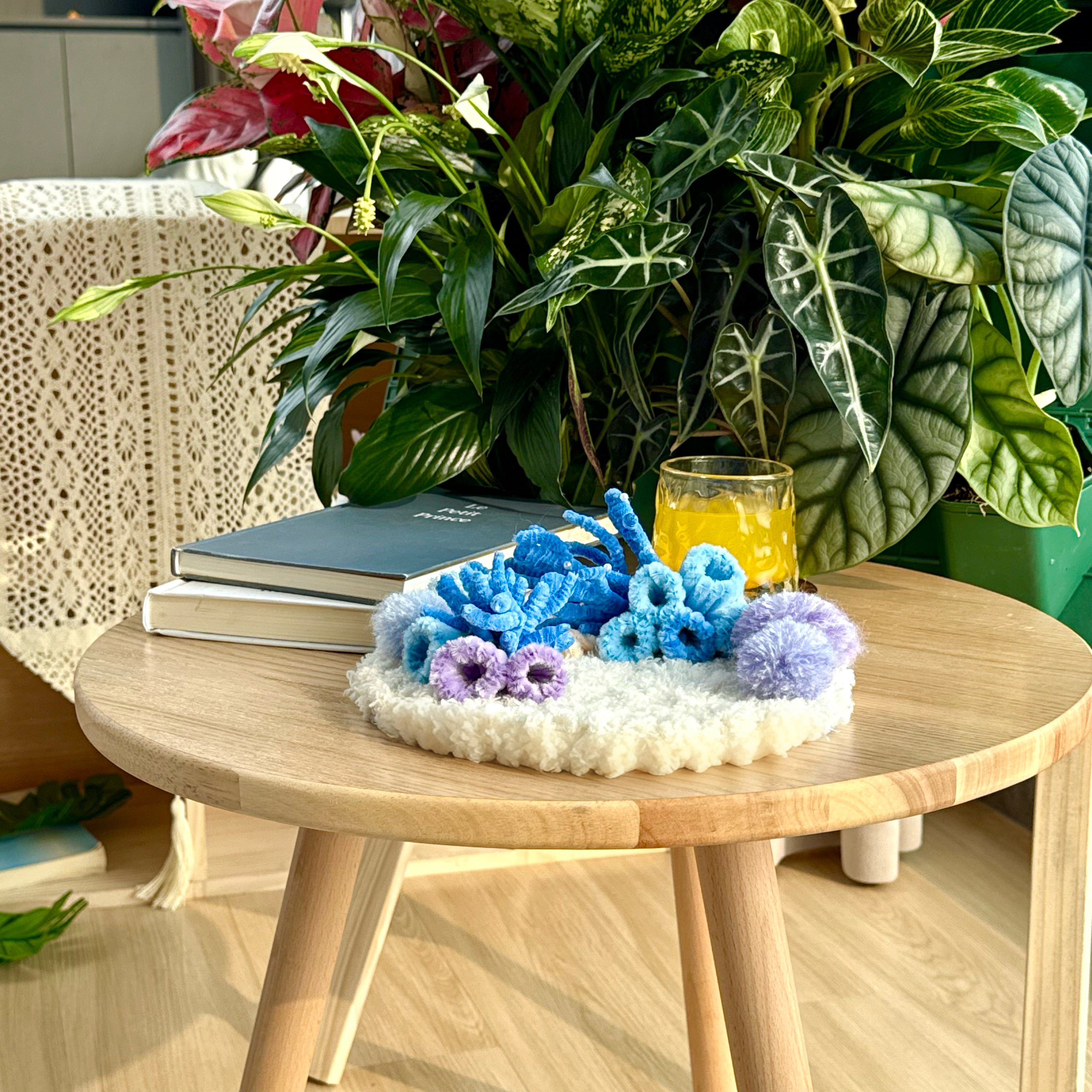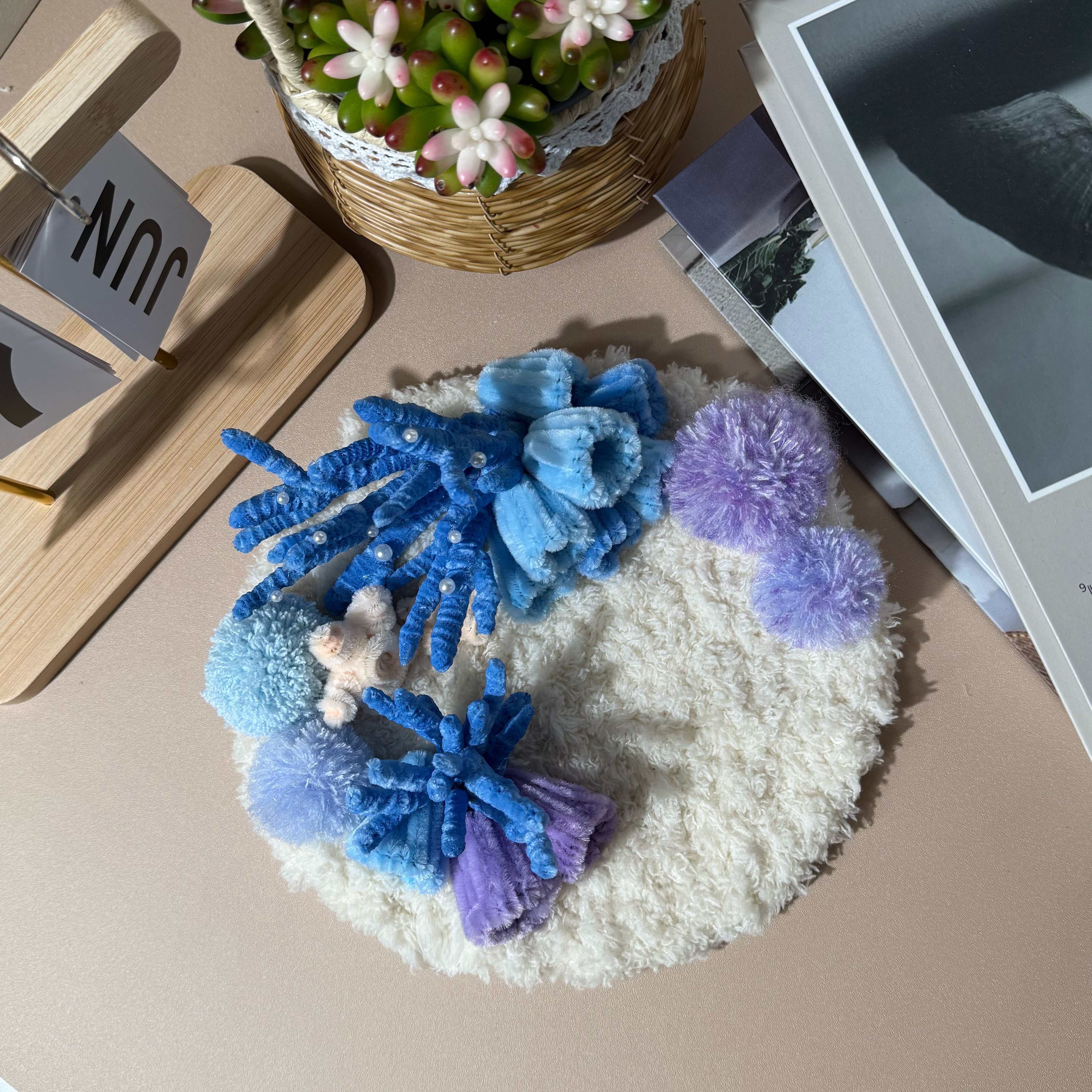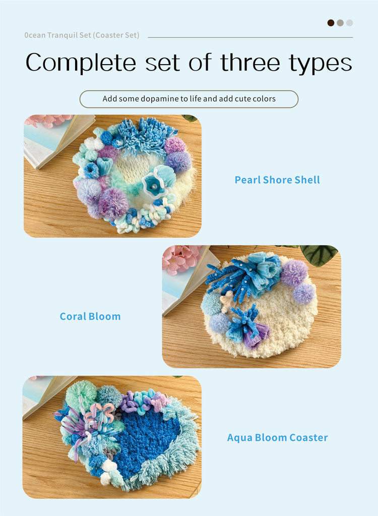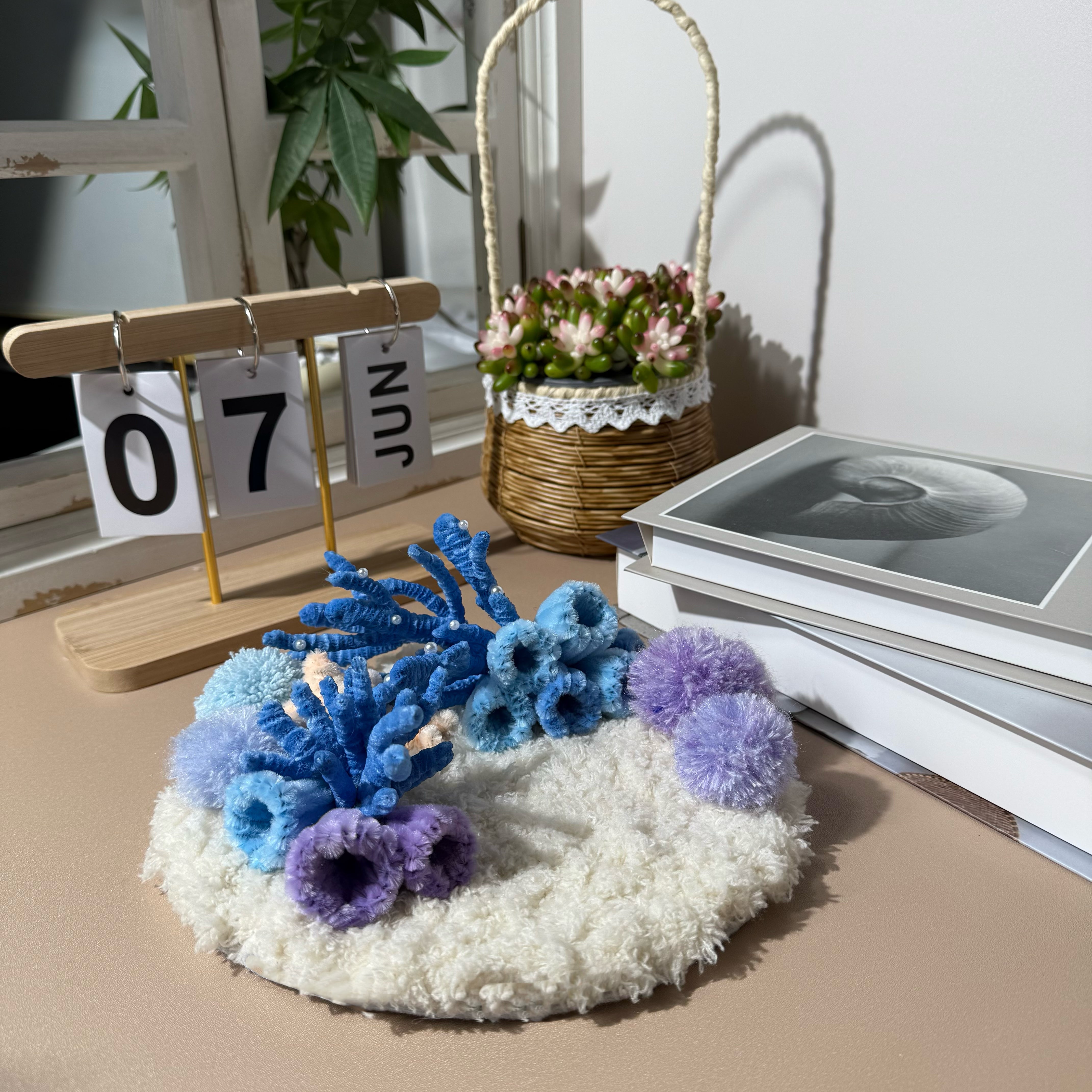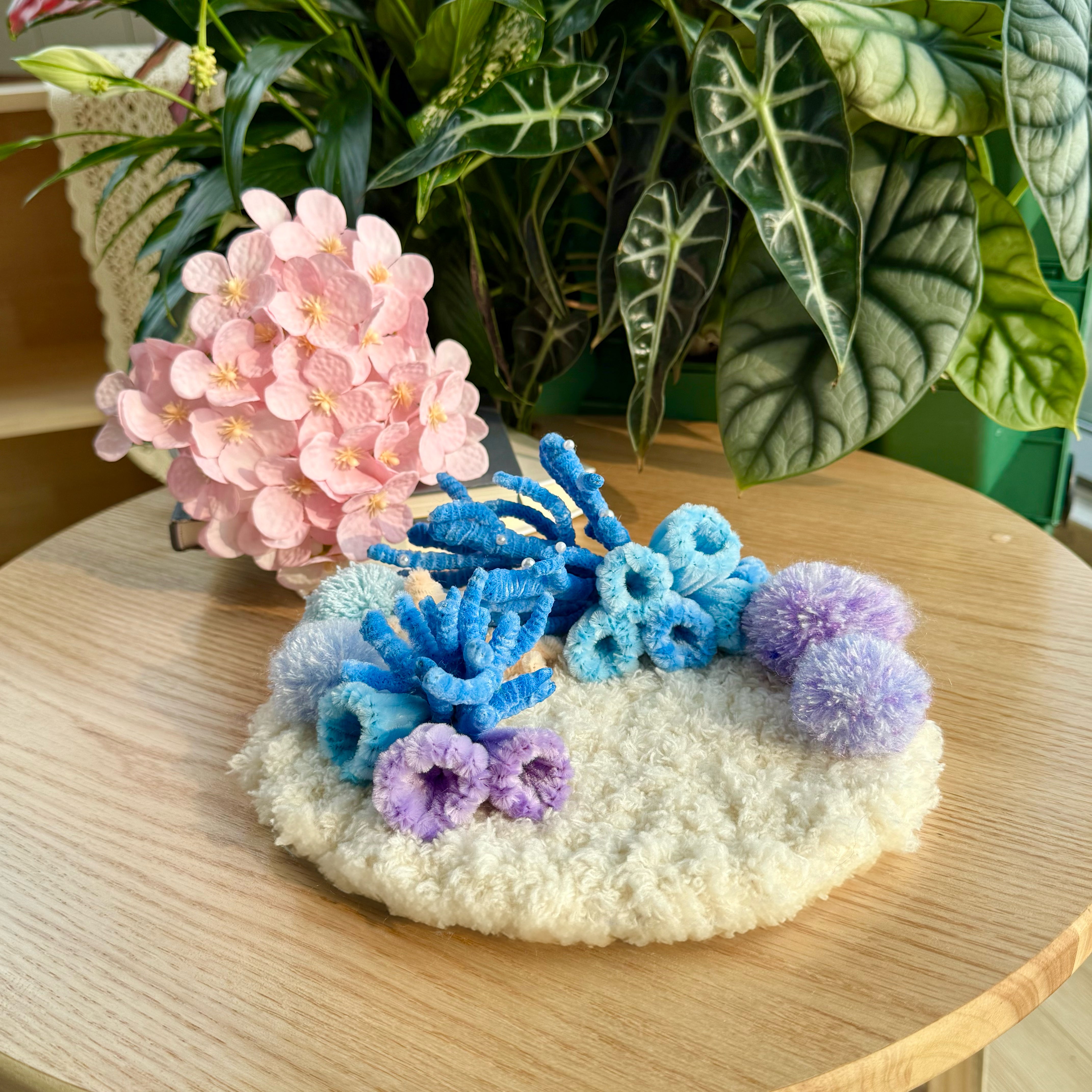 Gentle curves, layered fibers, and subtle sea-inspired textures create a miniature seascape that feels serene, tactile, and visually soothing.